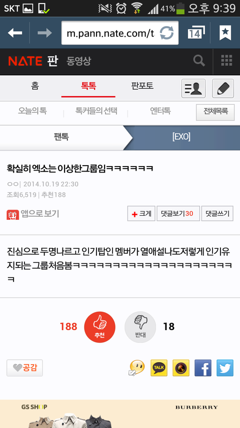 인기유지가되고있다고?ㅋㅋㅋㅋㅋㅋㅋㅋㅋ 댓글이더웃김 멘탈갑이라그렇데 똥싸고자빠졋네 엑소탈덕한애들이얼마나많은데 엑소얘기하면 다망해가는그룹이라그러는데