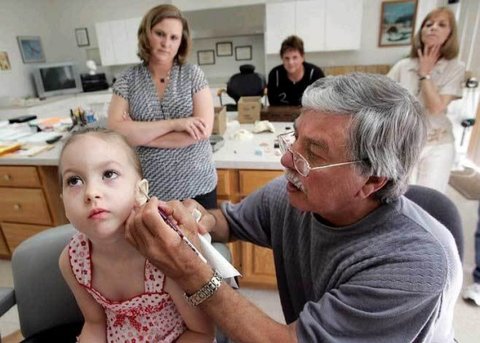 소녀의 인공귀를 만들어 주고 있네요