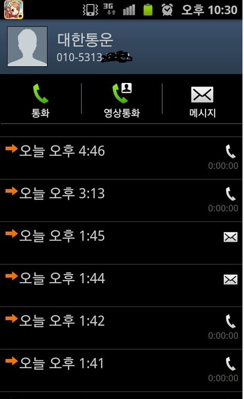 그래서 통화목록 캡쳐해서 오늘 전화 문자 이만큼이나 했는데 진짜 전화 한번밖에 안왔냐 하니까