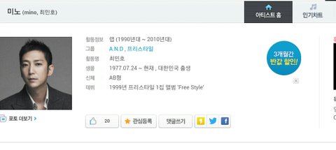 다음뮤직 bornhater민호가아니라 일박이일나왔던 미노로 되어있네;