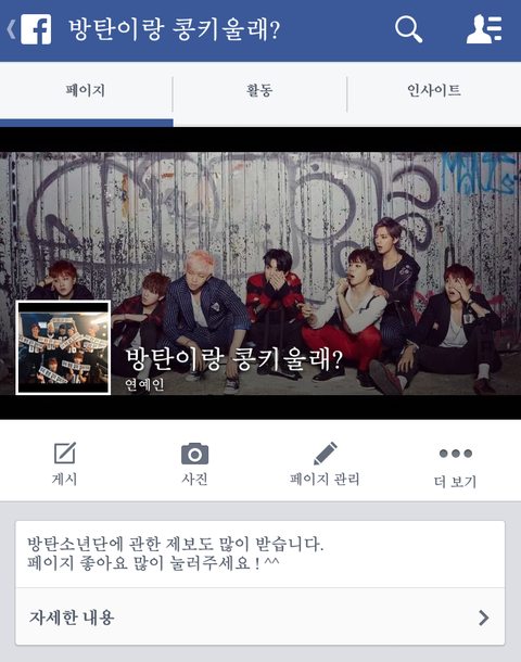 페이스북페이지에 방탄소년단페이지를 만들었어요 !