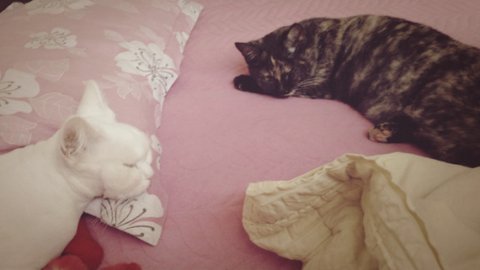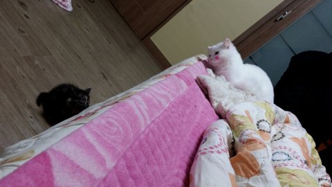 아직 어려서 침대위로 못 올라오던 모모는 이젠 쪼기와 사이좋게!
