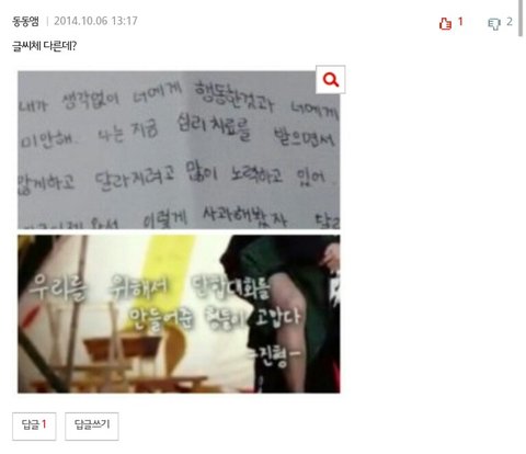 나진심 정진형빠는애아니고 구준회최애고 육비+정찬우 인데 글씨체 다르지않나? ㅎ이나 따른거 보면 조금 다른것같은데 쟤가 저편지보내고 저렇게 글씨 다르게쓸정도로 꼼수가 좋을까?