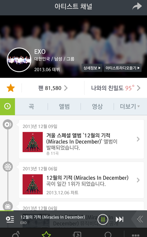 어쩐지 멜론 아티스트 엑소 정보에