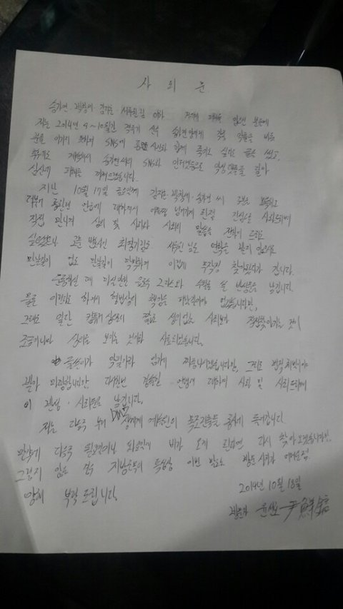 시발 악필견디고 다 읽어봤는데 진심으로 사과하는 내용도 없고 이 사과문을 남기고 갑니다 가 사과냐?? 별로 미안해하는 것 같지도 않고 내가 너 어디있는지 다 알어~~라고 협박하는거같아서 더 무서움. 음료수 남기고 간다는데 뭐가 든지 알고? 완전 미친놈이네