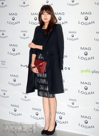 행사장에 올블랙룩 하고 버건디 클러치로 포인트 줘서