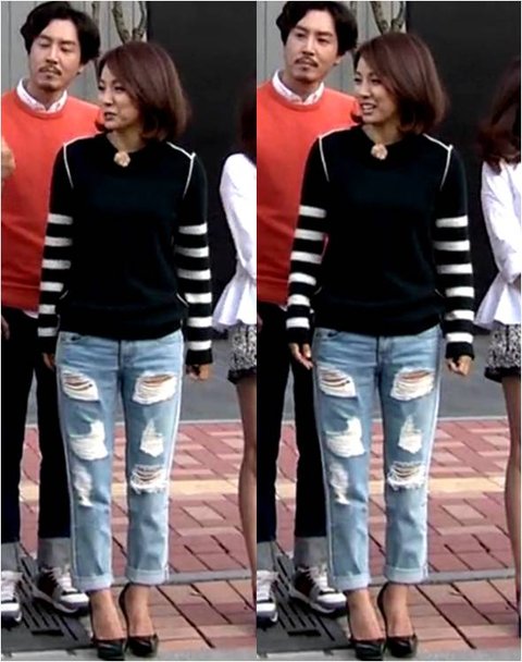 어젠 찢어진 청바지에 세컨플로어 스트라이프 니트 입고 나왔는데..