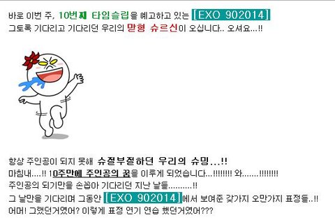 슈절부절, 슈무륵, 슈들슈들,슈다닥 까지 다 알고 계시네 ㅎㅎ 표정연기의 대향연이 펼쳐진다니 ㅠㅠ 기대된다 ㅠㅠㅠ