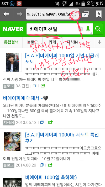 밤 11시부터 12시까지 네이버에 '비에이피천일'마구마구 검색해주시면 돼요!!!ㅎㅎ 띄어쓰기없습니다~