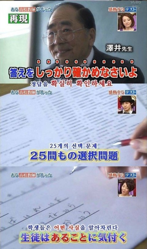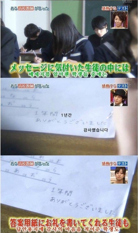 사와이 선생님이 남긴 시험지 속 자신들을 향한