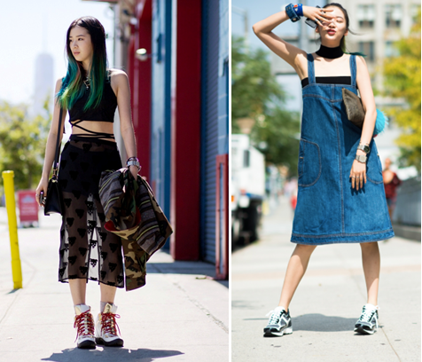 여성스런 룩에 헤븐 스니커즈를 매치하거나