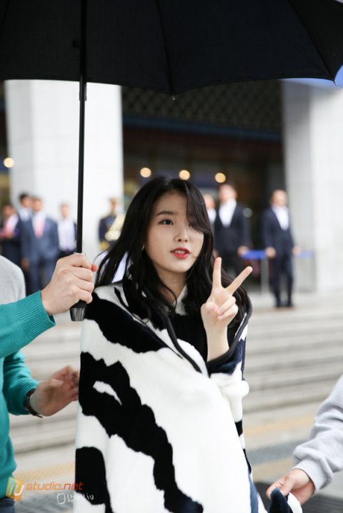 비오는와중에도 브이하는여유ㅎㅎ아이유 너 너무 귀여운거 아니니
