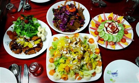 케이준치킨샐러드 도토리묵 돈까스 등