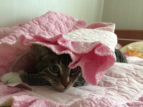 랑이는 처음 데려온 날부터 침대에서 자더니...