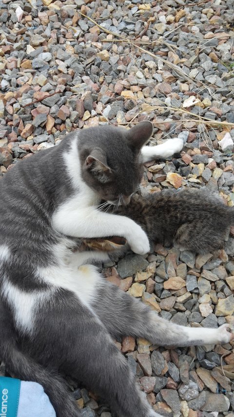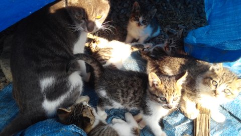 고양이들이 모두 애교도많고 특히 어미고양이가 !! 누가 키우던거같은데 버리고 갔나봐요..