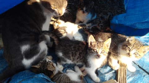 철근자재틈에서 먹고자고 혼자 아기고양이7마리를 키우는 어미고양이가 너무 기특하면서도 불쌍하네요 ㅜㅜ