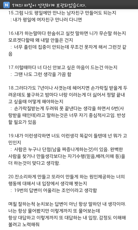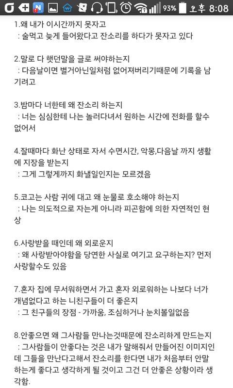 혼자얘기하면 코골고ㅠ남친한테 글로 질문했어요