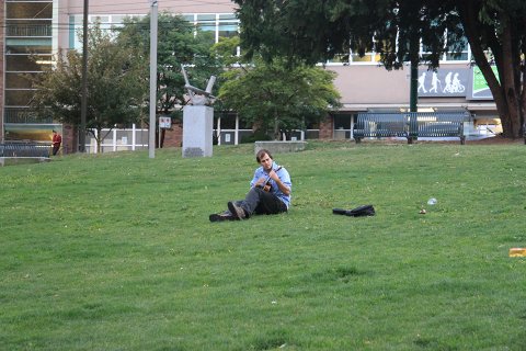 비트박스로 거리공연하는 젊은 친구, 구경꾼이 나밖에 없었다. 실력도 그닥...