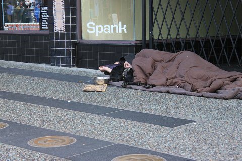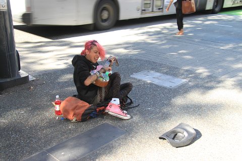비트박스를 하며 구걸하는 청년, 기타를치며 거리공연하는 젊은 여성 노숙자,
