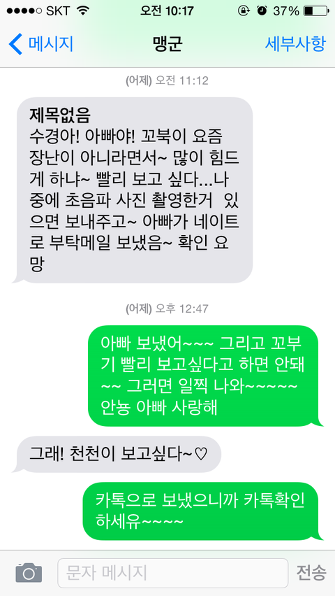 어제는 꼬부기가 빨리 보고 싶다고 문자를 보내오심ㅋㅋ