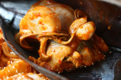 해물찜에 들어있는 재료들좀 열거해볼까여? 낙지있구요~ 키조개 있구요~ 대합조개 있구요 그린홍합 있구요~꽃게!! 그리고 새우 있고요고니! 제가 제일 좋아하는거구요~미더덕!! 톡톡 터지구요~~위소라~~ 완전 꼬들거리구요~~오징어!! 필수져잉! 질겅이 오징어구요~~콩나물 미나리 해물찜에 당연히 들어가지용!특이하게 조랭이떡이 들어가요!!완전 쫀독 +ㅁ+