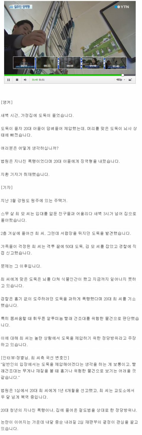 하여튼 한국이 이게 문제야!! 그래...ㅅㅂ 도둑들어오면 죽을정도로 맞아주고 경찰에 신고해야겠네!! x같은 법아!!