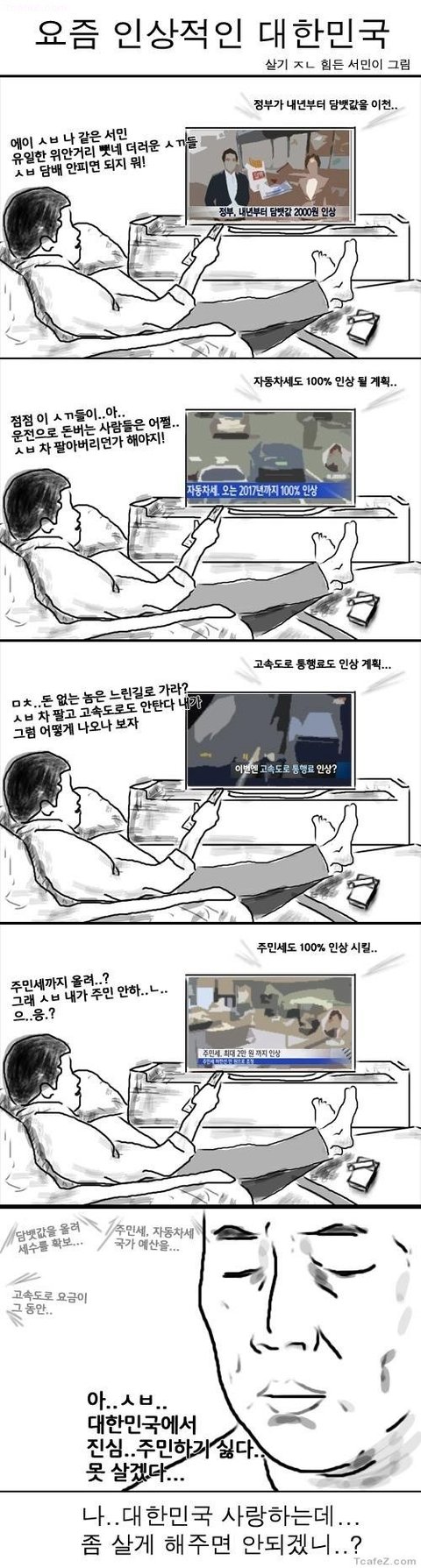 진심... 돈만있으면..대한민국..뜨고싶다... 법도그지같고.. 정부도그지같고.. 참...제대로 되있는것도하나없고.. 대한민국..어쩌다이리댔냐..90년도만에도 .. 이꼴은아니엿는데