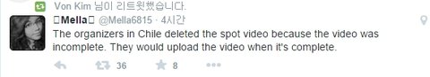 현지인이 물어봤나봐 어제처럼 당일 취소하는 뭐같은 상황이 생기면 모르지만 ㅋ칠레콘 스팟영상도 없어지긴했는데 영상수정해서 다시올려준다고했데