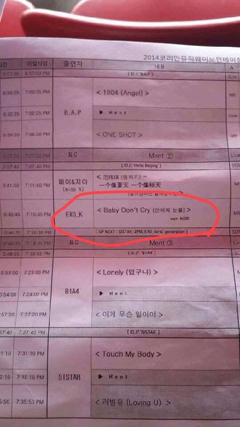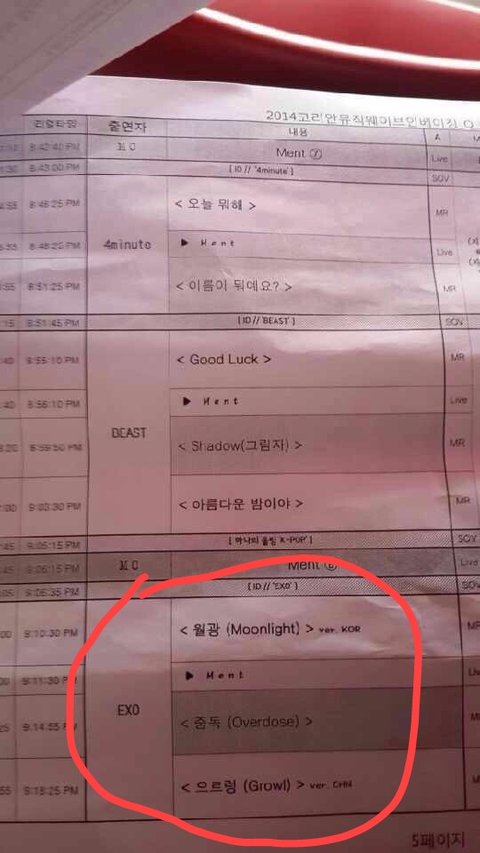 오늘 뮤직웨이보 큐시트떳음