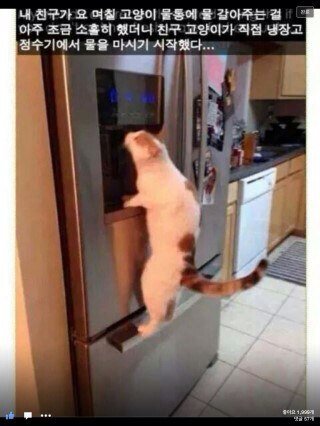 그리고 부엌 쪽으로 걸어가더니 의자->탁자 ->싱크대 ->정수기 순으로 올라가서 감.