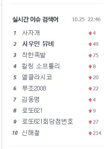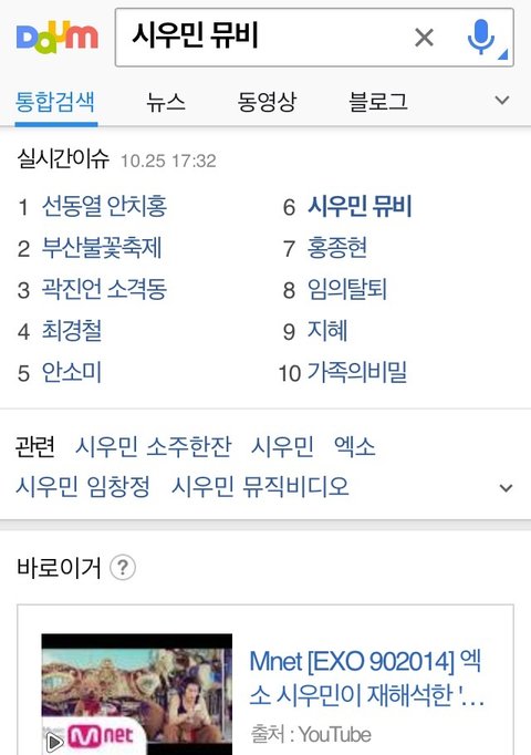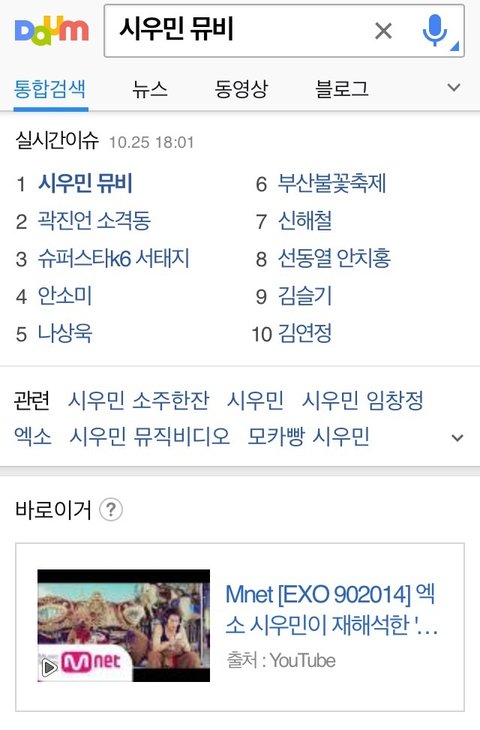 141025 다음 실검!!!시우민 뮤비!!!+ 네이트 실검