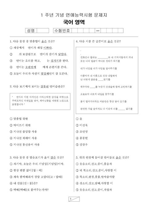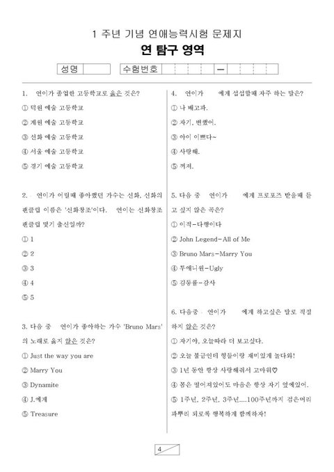 남친만 알 수 있는 문제들 섞어 문제지를 만들었어요!