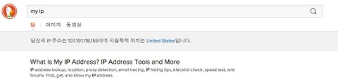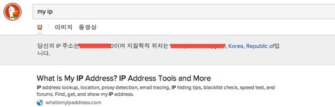자동으로 duckduckgo 메인창이동하면 > "my ip" 검색