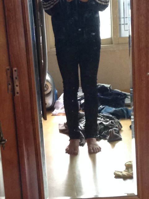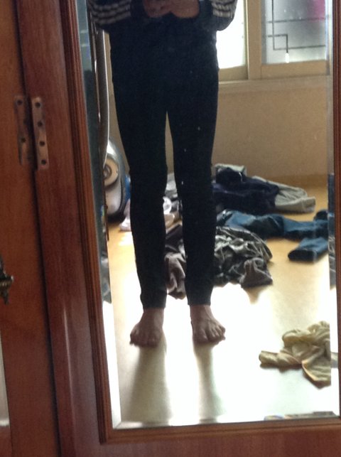오늘 처음으로 꽉끼는 스키니 진을 입어봤는데.... 내 다리평가좀 남잔데 너무 끼고 다리 너무 굵은 거 같아서 저런 바지 입기는...