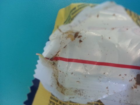 구더기가 벗어놓은 번데기가 포장지에 딱 하고 달라붙어 있더군요