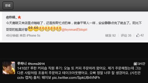 오늘 루한이 또 커피숖에 나타났다함. 주문받은 점원이 흥분해서 트윗올림