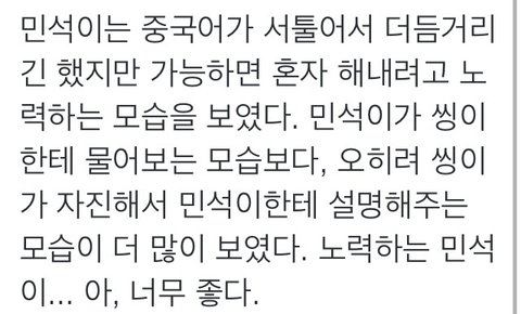 노력하는 민석이는 언제나 감동이야 ㅜ.ㅜ
