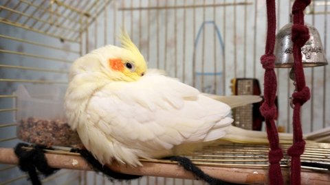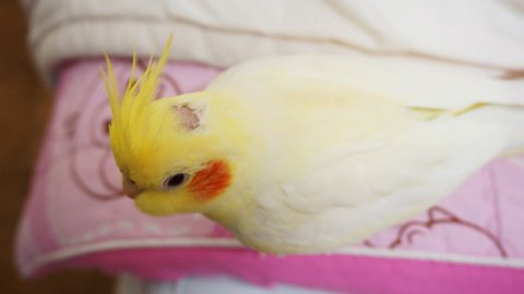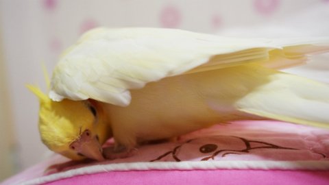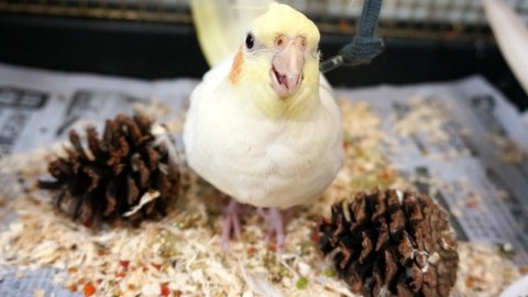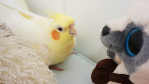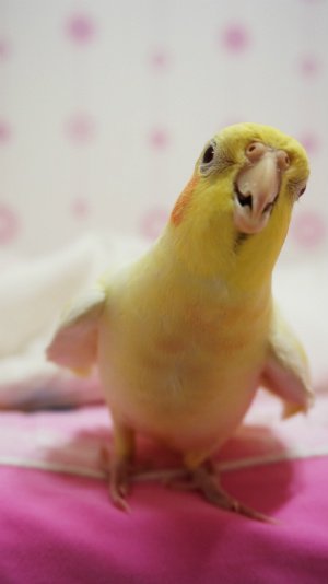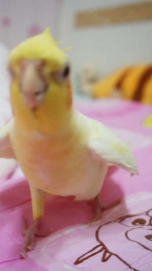 앵무새들이 뭔가를 무서워하면 이런 포즈로 몸을 좌우로 흔들흔들~