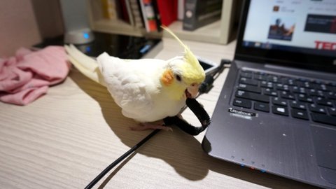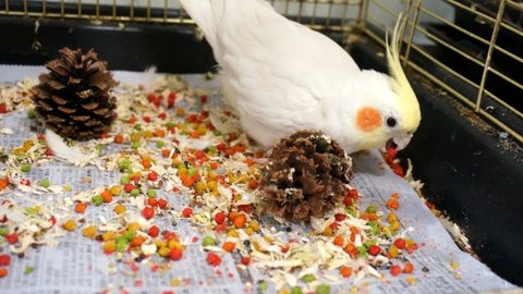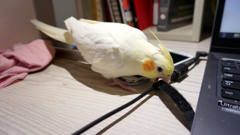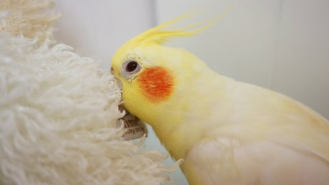 보통 앵무새들은 놀때 발을 사용해서 물건을 짚거나 고정시키곤 하는데