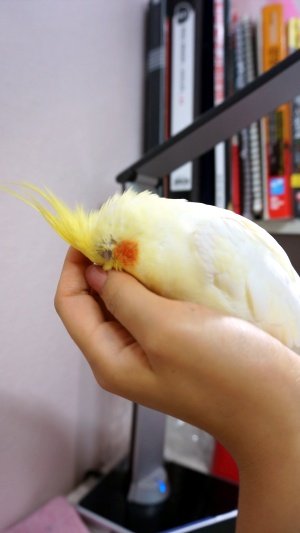 앵무새랑 많이 친해지면 목을 쭉~ 늘이거나 날개밑에 손을 집어넣거나 해도 가만히있어요