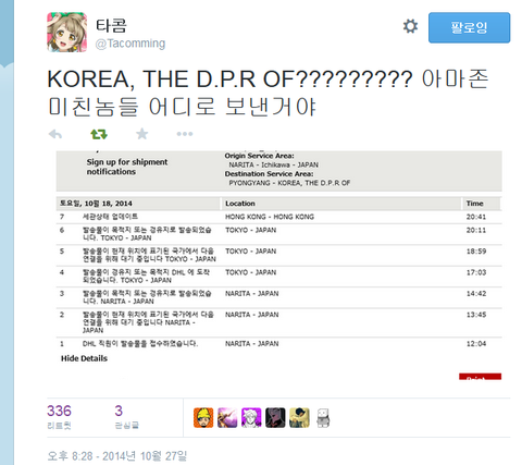그러나 아마존쪽에서 배송을 북한으로 잘못 보냄