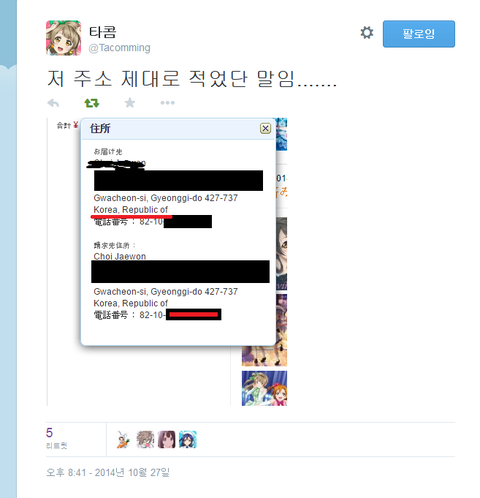 앨범을 시켰는데 주소는 정확히 대한민국임