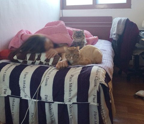 제 팔이라던가 무릎, 다리에서 꿀잠을 자곤 하죠
