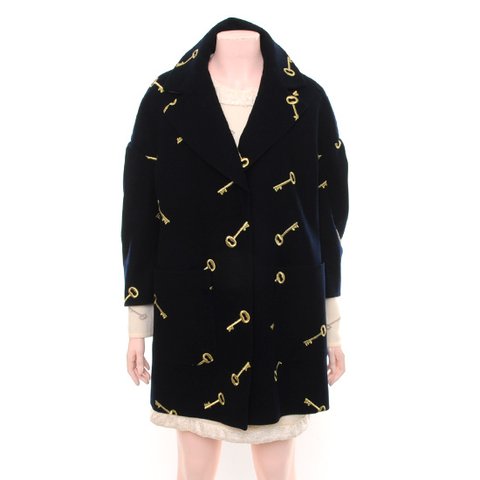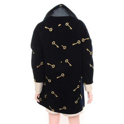 티렌의 이 제품은 열쇠 자수 디테일이 돋보이는 벌룬 소매 코트로