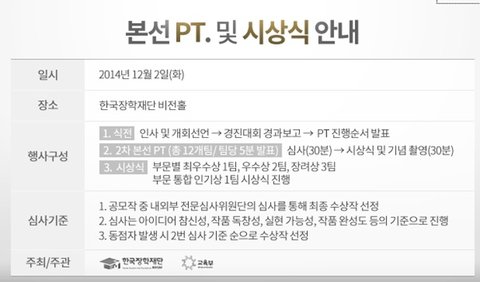 사양과 형식 등이 정해 져 있으니 공모전 홈페이지에서 반드시 확인해 보세요~~
