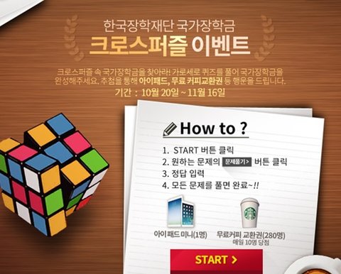 잠시 휴식을 취하기 위해 공모전 홈페이지에 있는 크로스퍼즐 이벤트도 함 참여해 보세요~