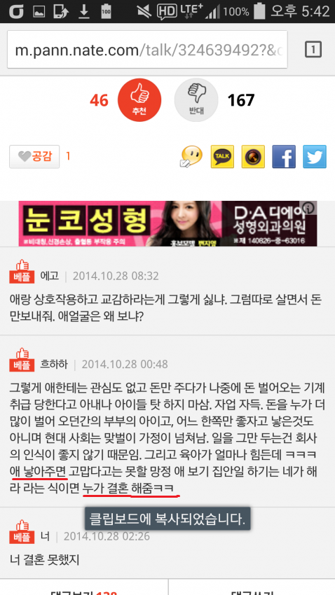 두번째 베플. 빨간 줄로 밑줄이 되어있죠???