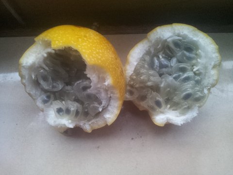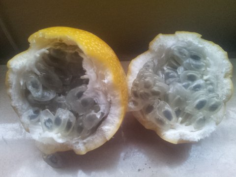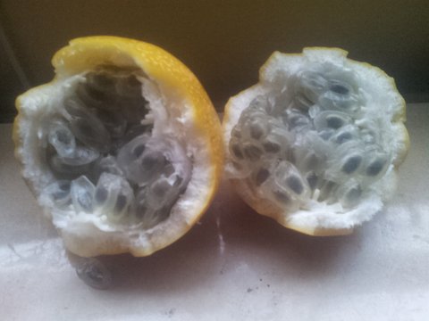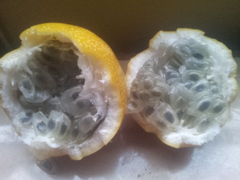 석류야 아시다시피 빨간색 알맹이가 특기지만 이 과일은 개구리알 올챙이처럼 보입니다.