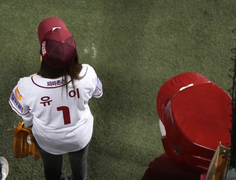 넥센 플레이오프 2차전에서 유이가 시구를 했죠.