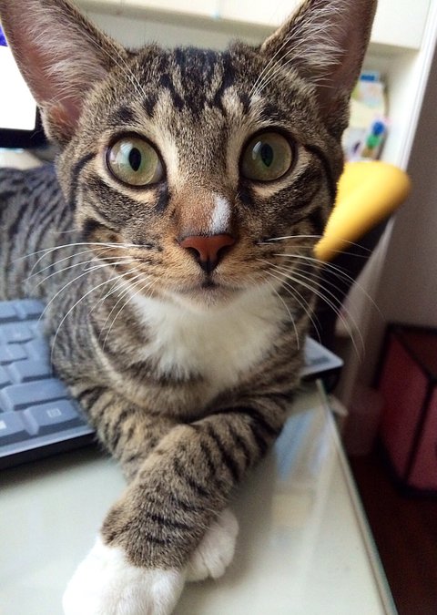 네~ 다른 많은 고양이들과 마찬가지로 랑이도 턱에 무언가를 괴는 것을 좋아해요ㅋㅋ